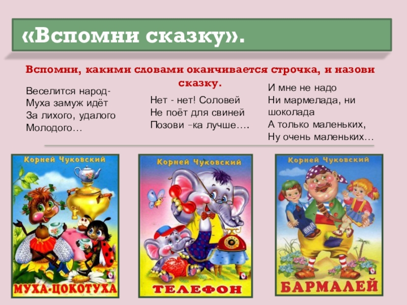 Вспомни, какими словами оканчивается строчка, и назови сказку.