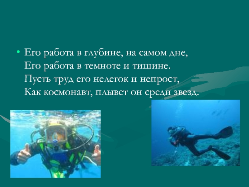 Его работа в глубине, на самом дне,