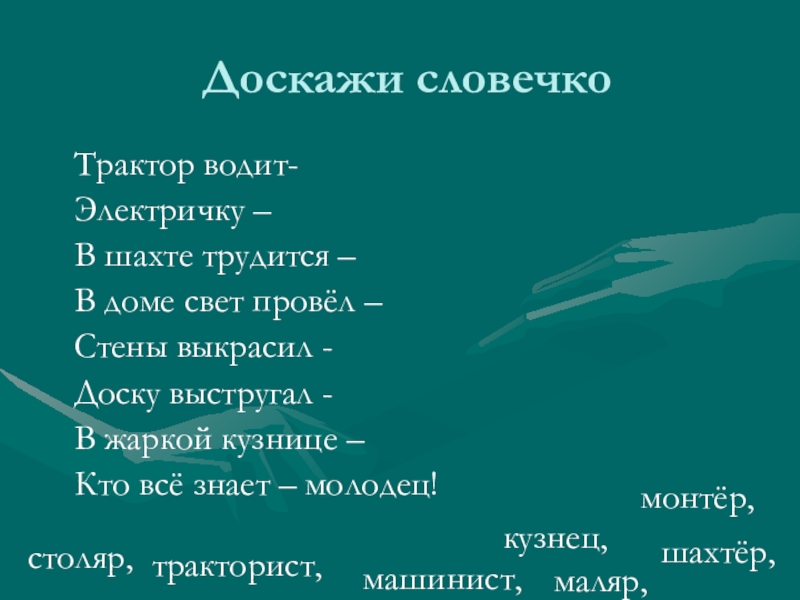 Слайд 27Доскажи словечко
