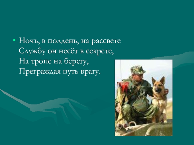 Службу он несёт в секрете,