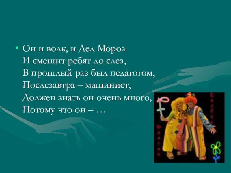 И смешит ребят до слез,