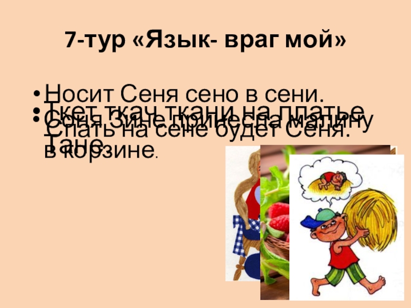 Носит Сеня сено в сени.