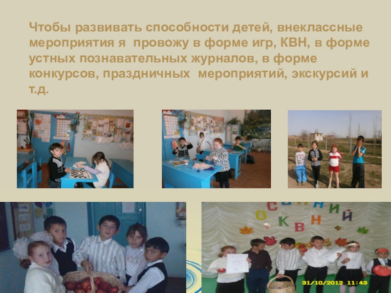 Слайд 4Чтобы развивать способности детей, внеклассные мероприятия я провожу в форме игр,
