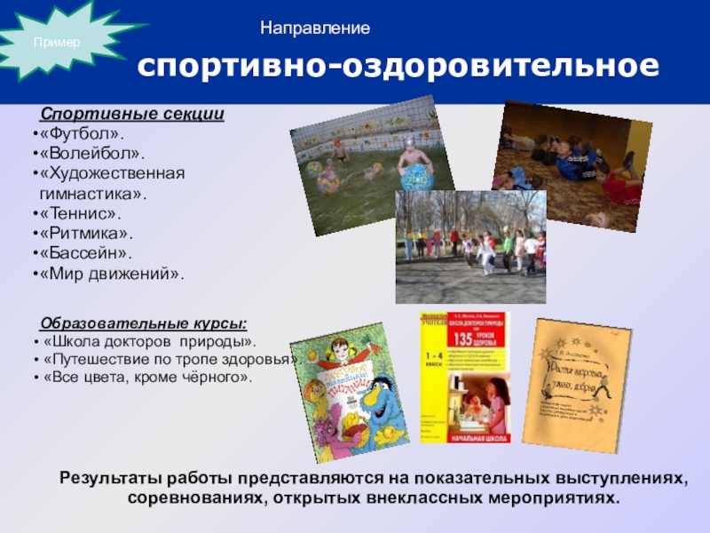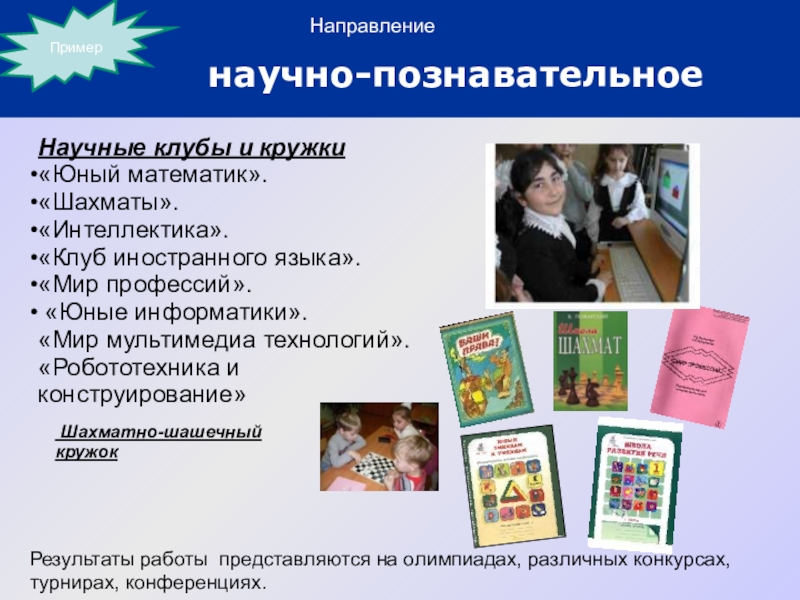 Результаты работы представляются на олимпиадах, различных конкурсах, турнирах, конференциях.