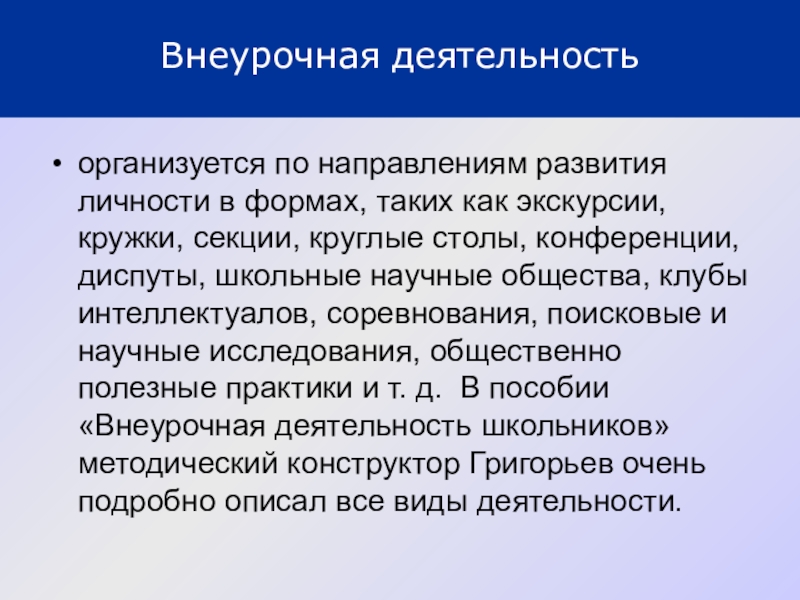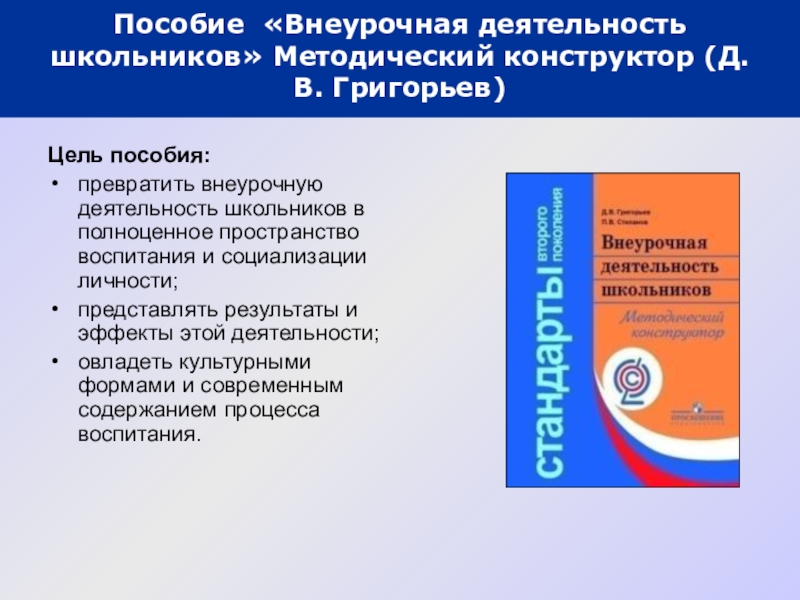 Пособие «Внеурочная деятельность школьников» Методический конструктор (Д.В. Григорьев)