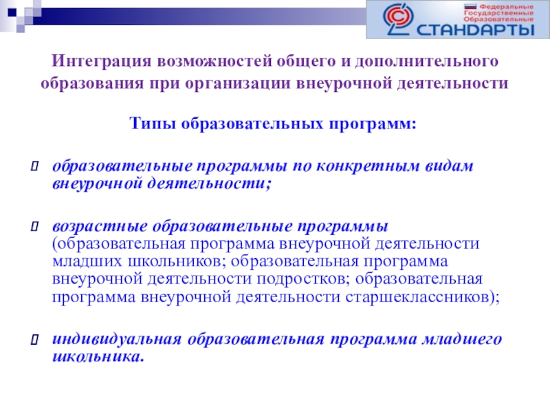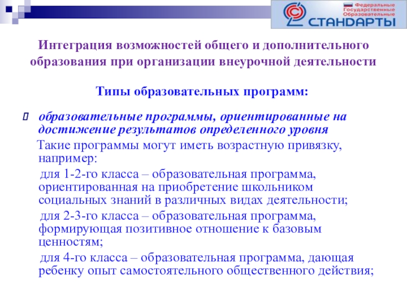 Типы образовательных программ: