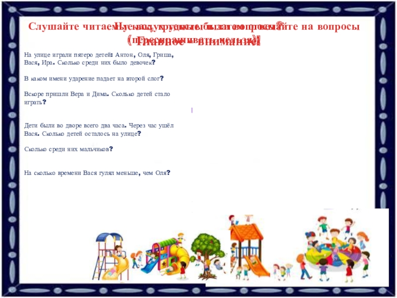 Слушайте читаемые вслух тексты и затем отвечайте на вопросы (переспрашивать нельзя).