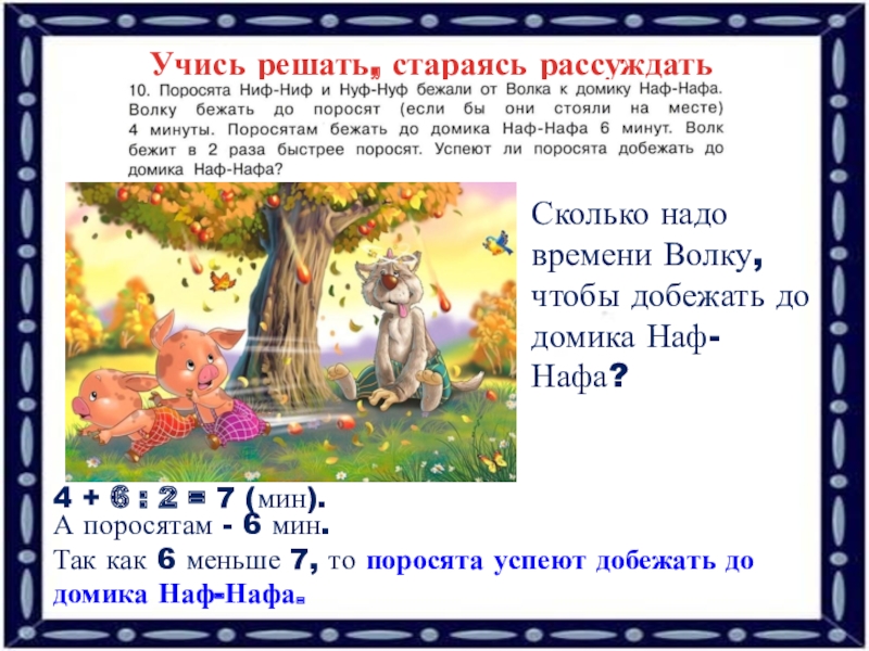 Так как 6 меньше 7, то поросята успеют добежать до домика Наф-Нафа.