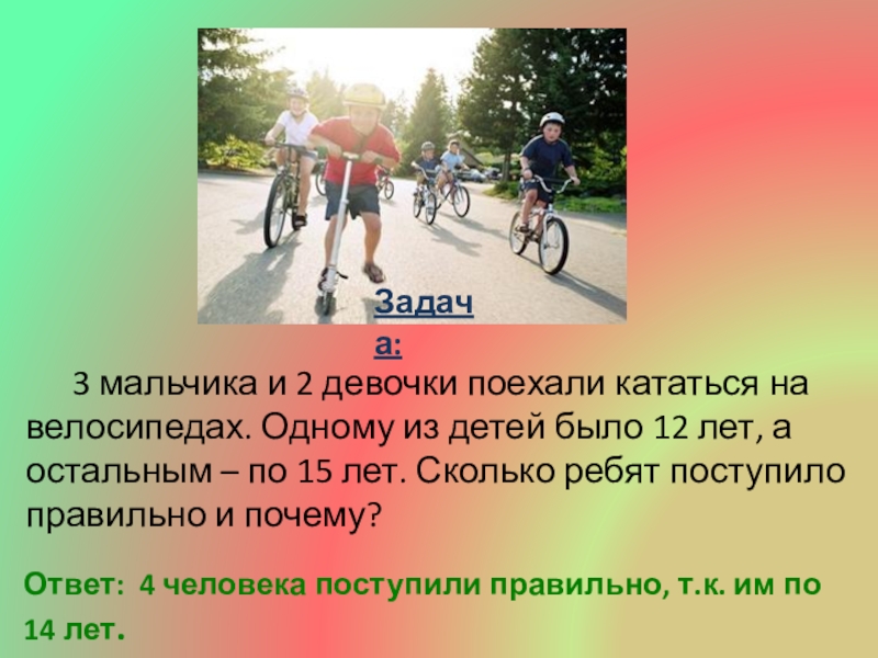 Ответ: 4 человека поступили правильно, т.к. им по 14 лет.