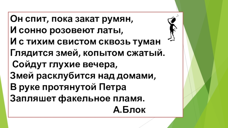 тихим свистом сквозь туман Глядится змей, копытом сжатый.