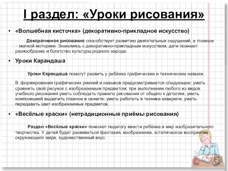 I раздел: «Уроки рисования» «Волшебная кисточка» (декоративно-прикладное искусство)        Декоративное рисование