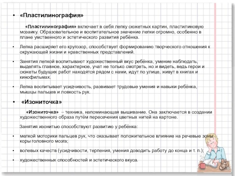«Пластилинография»      «Пластилинография» включает в себя лепку сюжетных картин, пластилиновую мозаику. Образовательное и