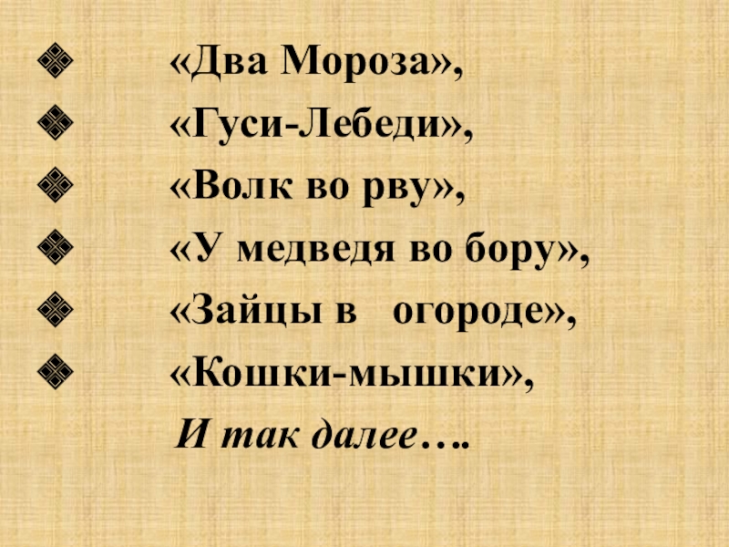 «Два Мороза»,     «Гуси-Лебеди»,     «Волк во