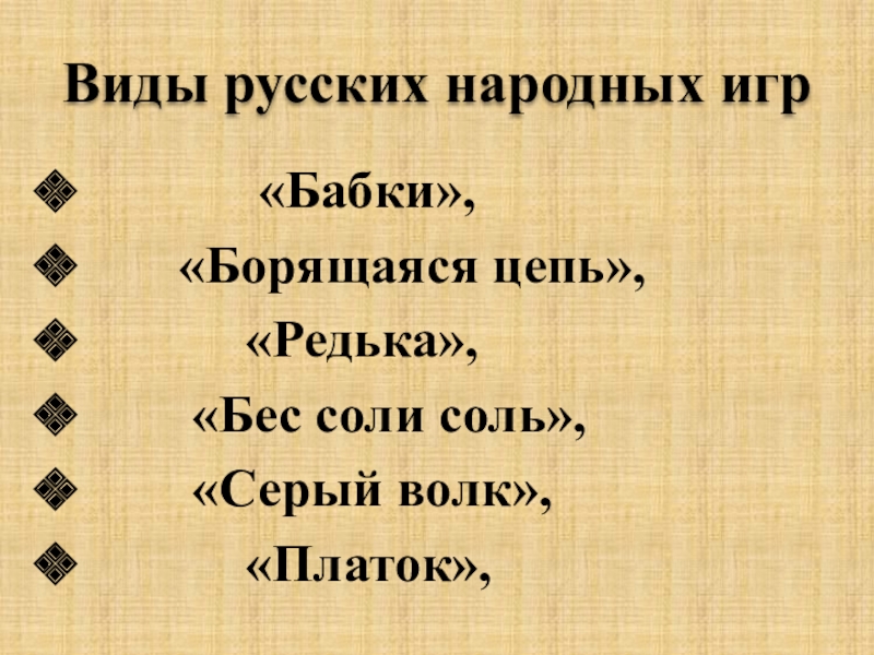 РУССКИЕ  НАРОДНЫЕ ИГРЫ