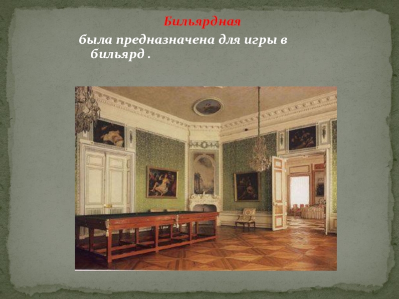 Бильярдная     была предназначена для игры в бильярд .