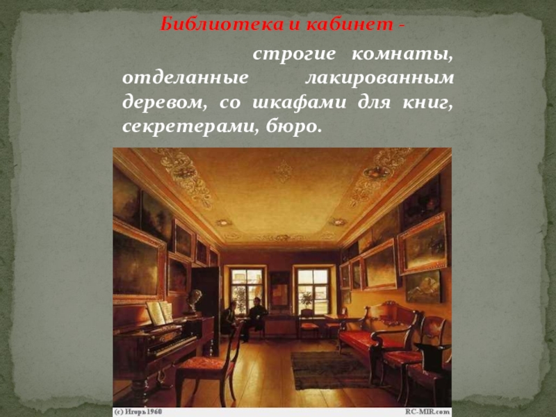 Слайд 15 Библиотека и кабинет -