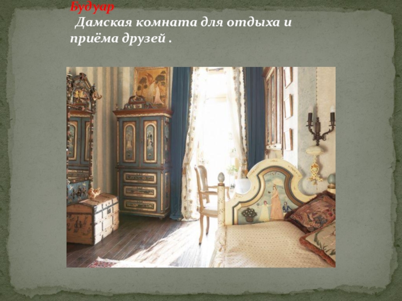 Слайд 12Будуар Дамская комната для отдыха и приёма друзей .