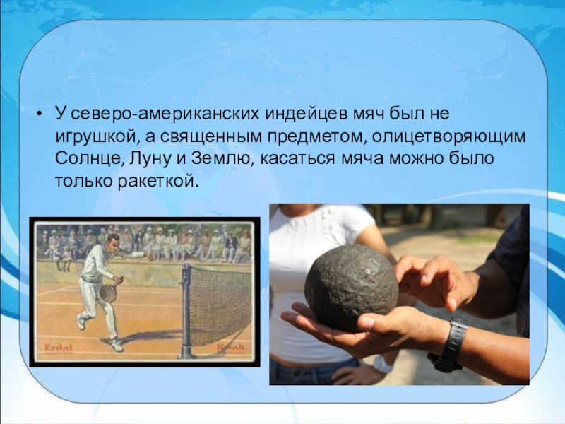Слайд 18У северо-американских индейцев мяч был не игрушкой, а священным предметом, олицетворяющим