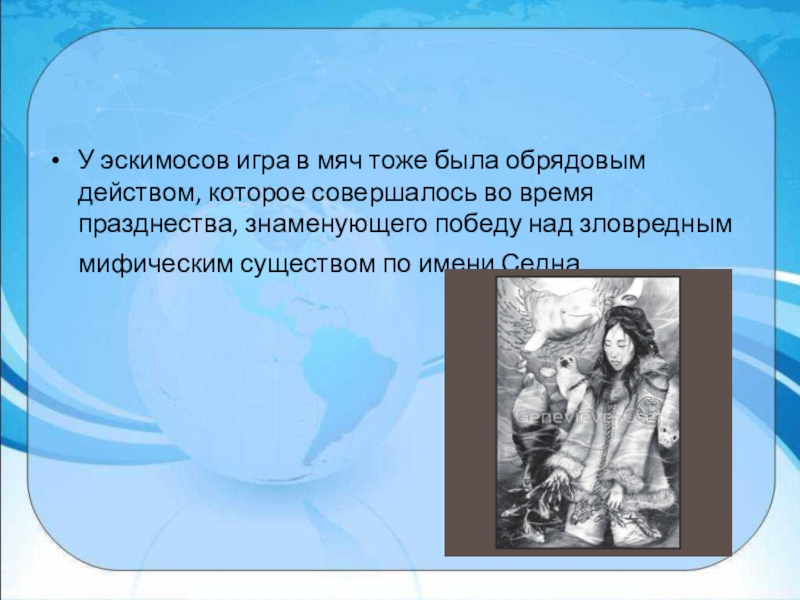 Слайд 19У эскимосов игра в мяч тоже была обрядовым действом, которое совершалось