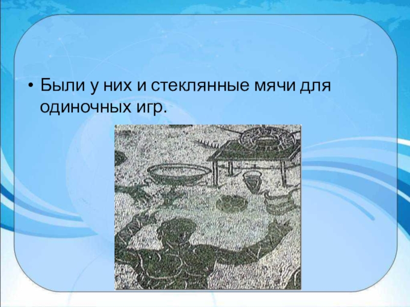Слайд 28Были у них и стеклянные мячи для одиночных игр.