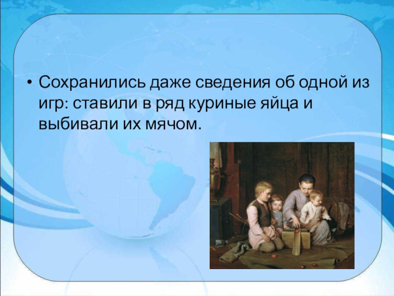 Слайд 36Сохранились даже сведения об одной из игр: ставили в ряд куриные