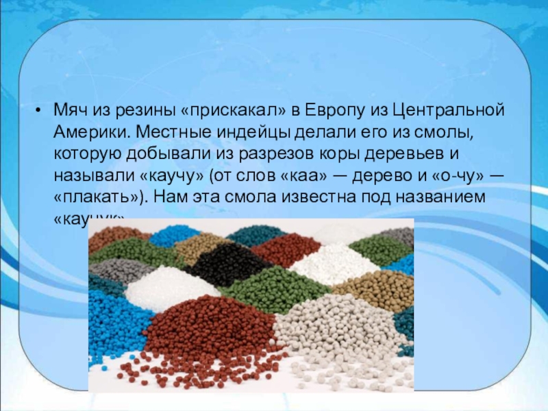Слайд 15Мяч из резины «прискакал» в Европу из Центральной Америки. Местные индейцы