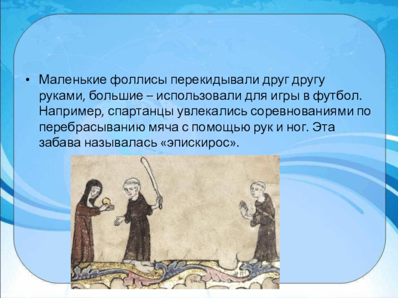 Слайд 26Маленькие фоллисы перекидывали друг другу руками, большие – использовали для игры