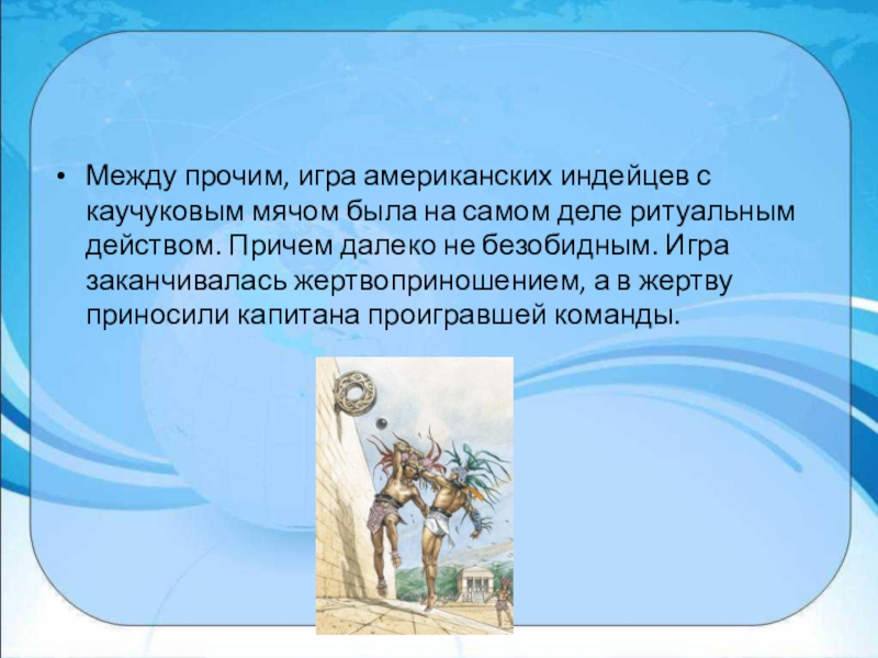 Слайд 17Между прочим, игра американских индейцев с каучуковым мячом была на самом