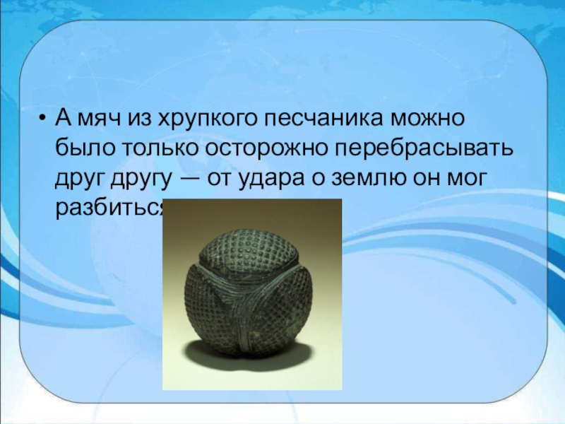 Слайд 9А мяч из хрупкого песчаника можно было только осторожно перебрасывать друг