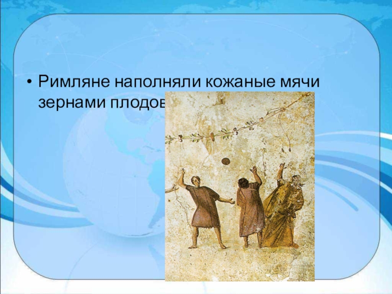 Слайд 27Римляне наполняли кожаные мячи зернами плодов инжира.