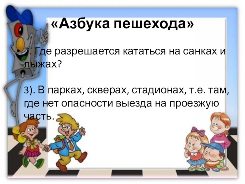 3). В парках, скверах, стадионах, т.е. там, где нет опасности выезда на проезжую часть.