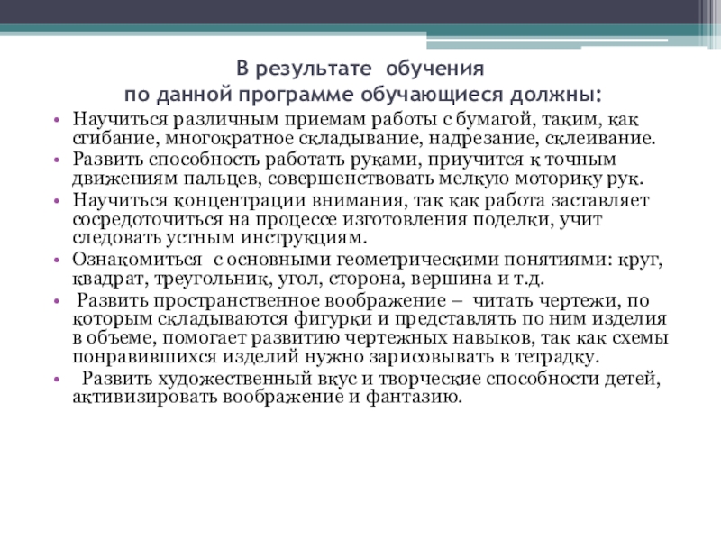 Развить пространственное воображение – читать чертежи, по которым складываются фигурки и представлять по ним изделия в объеме, помогает развитию чертежных навыков, так как схемы понравившихся изделий нужно зарисовывать в тетрадку.