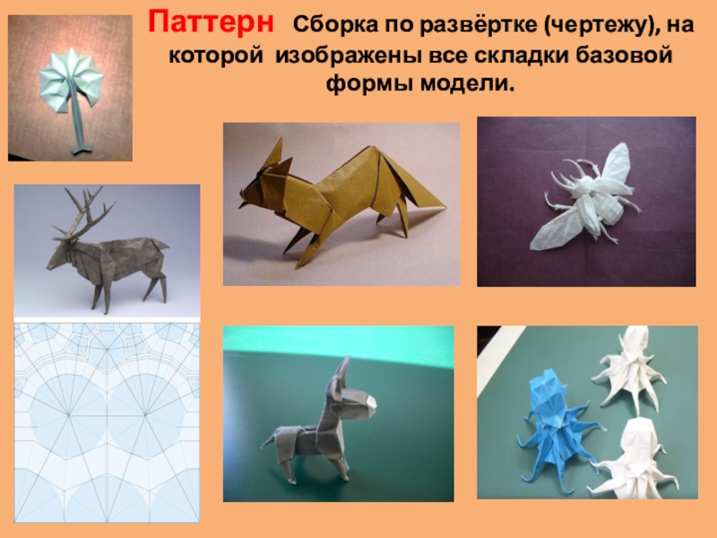 Слайд 13Паттерн Сборка по развёртке (чертежу), на которой изображены все складки