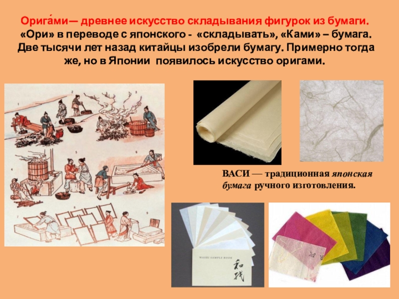 Слайд 3Орига́ми— древнее искусство складывания фигурок из бумаги.