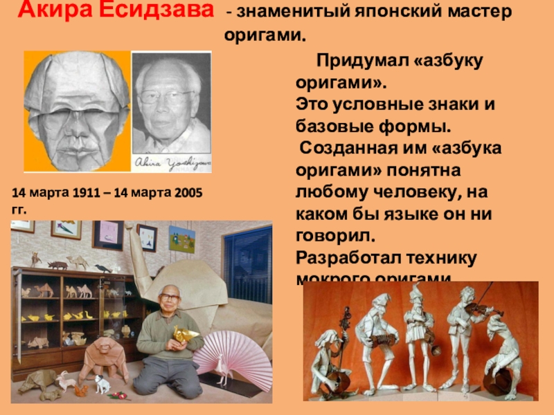 Слайд 24Акира Ёсидзава - знаменитый японский мастер оригами.