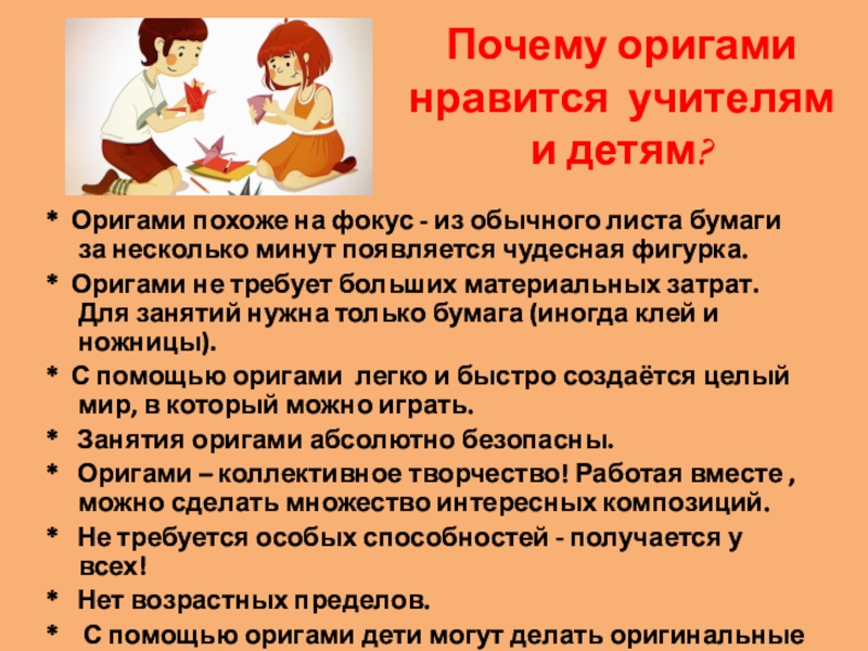 * Развивают уверенность в своих силах и способностях – неуспевающих на занятиях оригами не бывает!