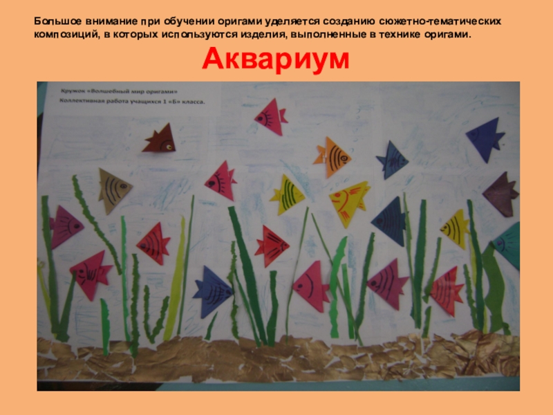 Большое внимание при обучении оригами уделяется созданию сюжетно-тематических композиций, в которых