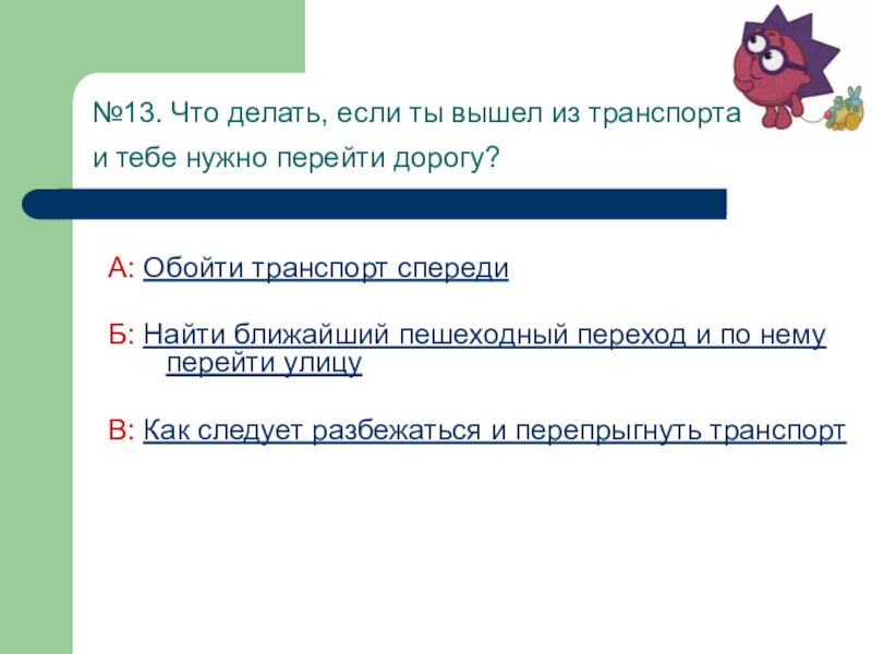 В: Как следует разбежаться и перепрыгнуть транспорт