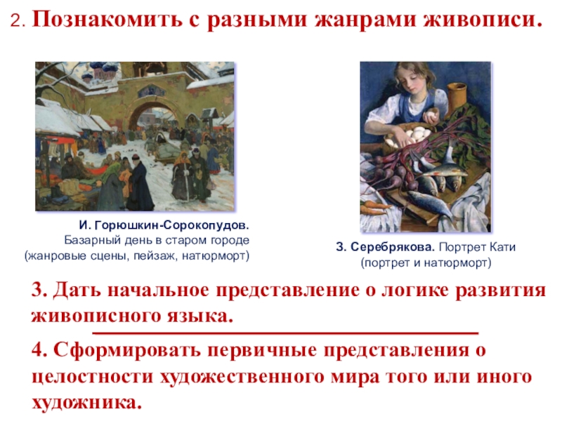 4. Сформировать первичные представления о целостности художественного мира того или иного художника.