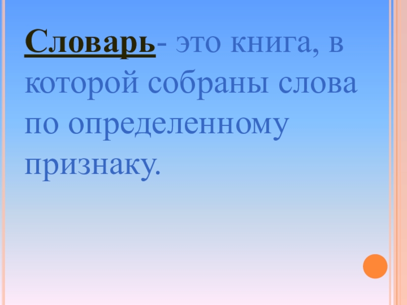 Словарь- это книга, в которой собраны слова по определенному признаку.