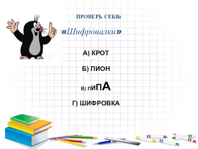 Это сайт презентаций, где можно хранить и обмениваться своими презентациями, докладами, проектами, шаблонами в формате PowerPoint с другими пользователями. Мы помогаем школьникам, студентам, учителям, преподавателям хранить и обмениваться учебными материалами.