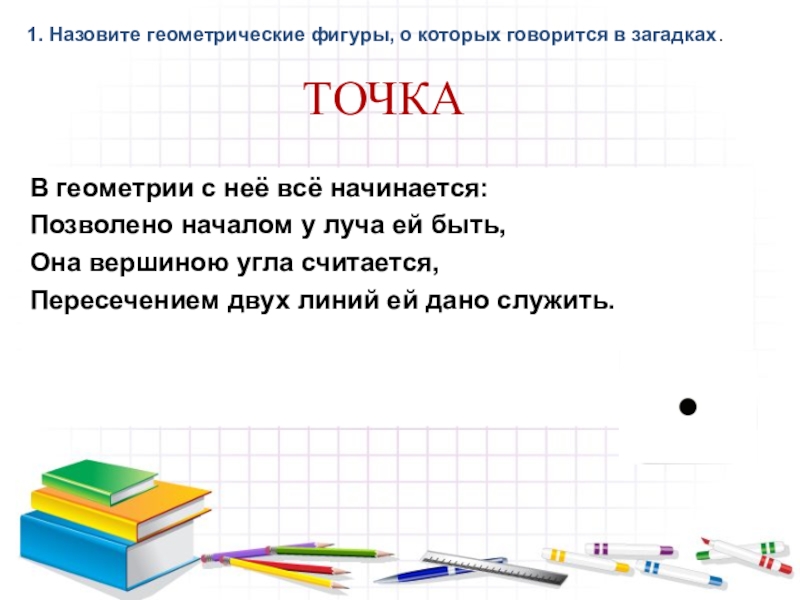 1. Назовите геометрические фигуры, о которых говорится в загадках.