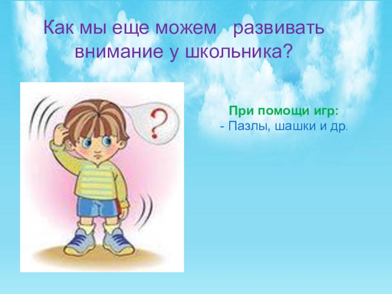 - Положить в ряд 7-10 различных предметов и прикрыть их. Приоткрыв их секунд на 10, снова закрыть и предложить ребенку перечислить все.