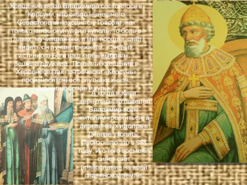 Произошло это в 988 году. И с того времени сияет свет православия на всей славянской земле.