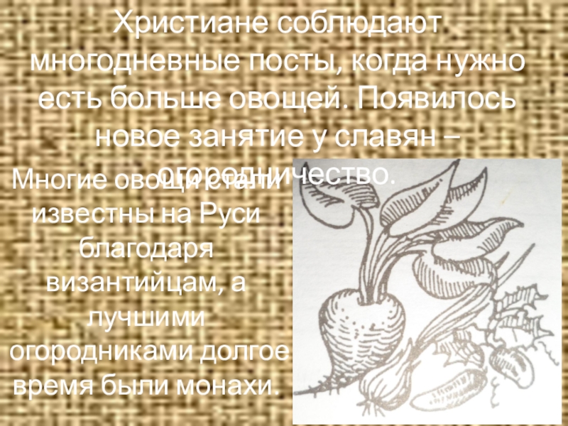 известны на Руси благодаря византийцам, а лучшими огородниками долгое время были монахи.