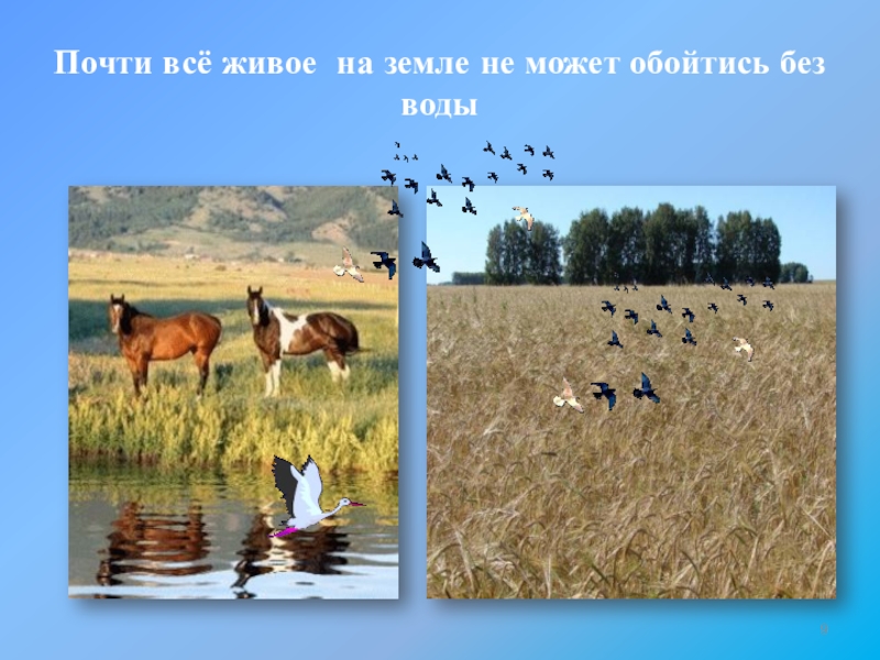 Слайд 9Почти всё живое на земле не может обойтись без воды