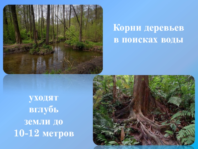 Корни деревьев в поисках водыуходят вглубь земли до 10-12 метров