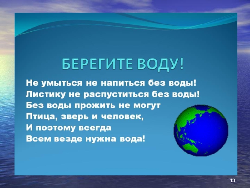 Вода – это сама жизнь, так как без воды не возможна жизнь на земле.