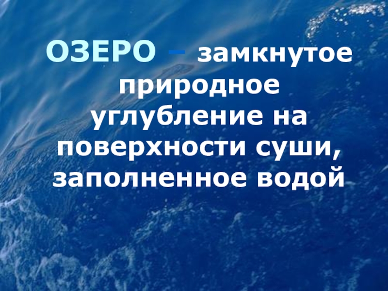 Слайд 5ОЗЕРО – замкнутое природное углубление на поверхности суши, заполненное водой