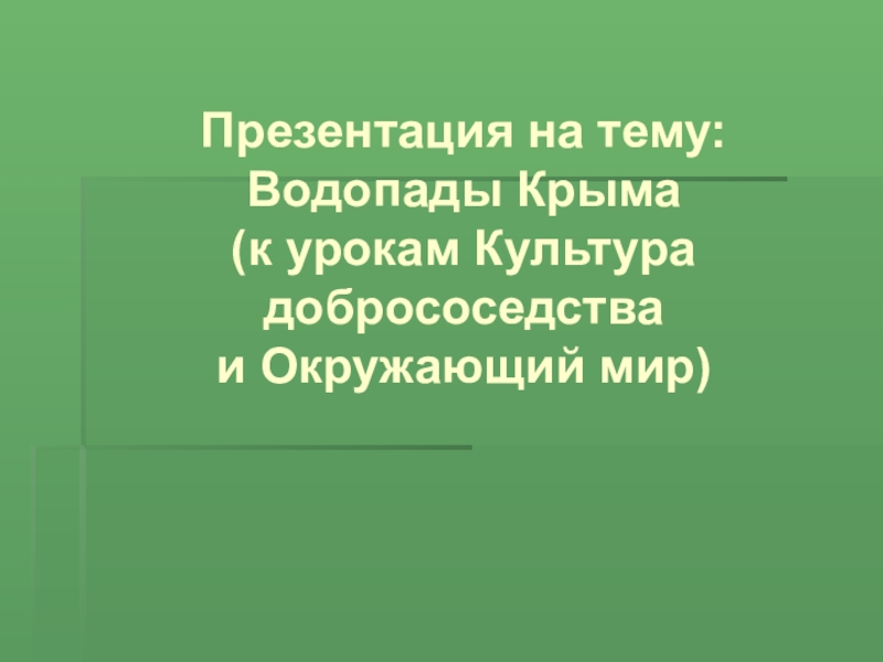 Слайд 1Презентация на тему: Водопады Крыма